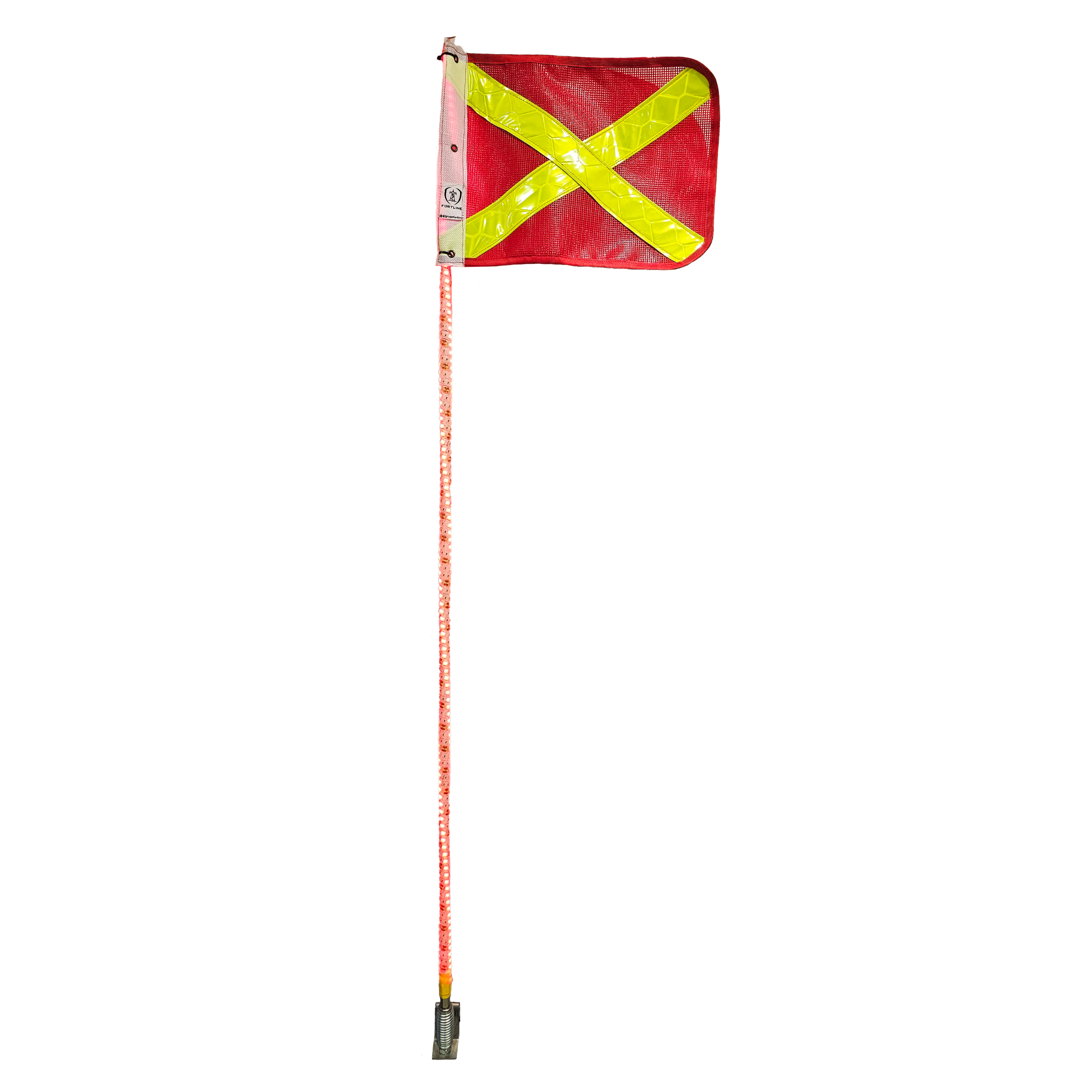 Bandeirola refletiva com fita LED revestido sobre a haste para sinalização dos veículos em áreas de circulação controladas na mineração. Projetada para ser um equipamento acoplado a veículo leve que tem como função informar sua presença nas áreas de trânsito de veículos evitando colisão com equipamentos de grande porte.